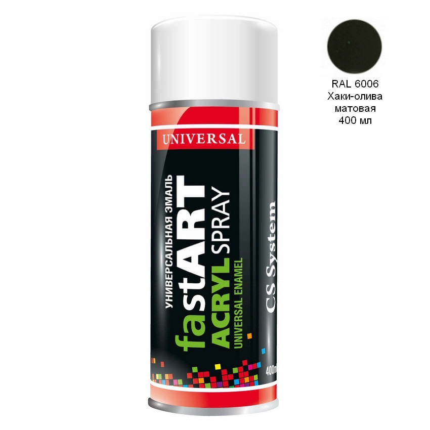 швидкосохнуча універсальна акрилова емаль, стійка до УФ-випромінювання. Випускається в широкому спектрі відтінків.